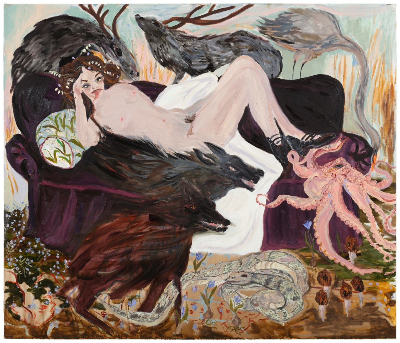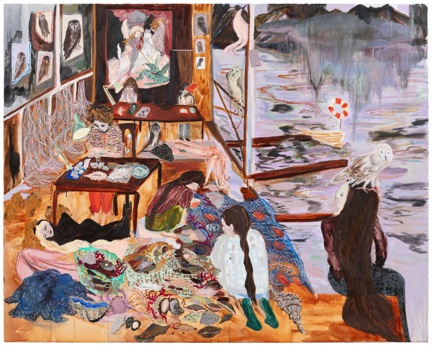 Eeva Peura's paintings are an amalgam of found images, imagined memories, and a contrary mix of painting styles. Peura is intrigued by how reality and fantasy become jumbled in our minds, and this fusion lends her paintings their fierce intensity. Becoming deeply immersed in the painting process is an inherent part of Peura's method. Her paintings take shape through deep concentration on details such as tree branches, moons, rippling water, and the forms of plants and animals, but intuition and chance play an equally important role in her process. Peura never knows exactly where the process will lead when she begins painting. Time is a critical element; sometimes, it requires a long conversation for the painting to find its final shape. The key is to trust the process and embrace its unfolding stages.