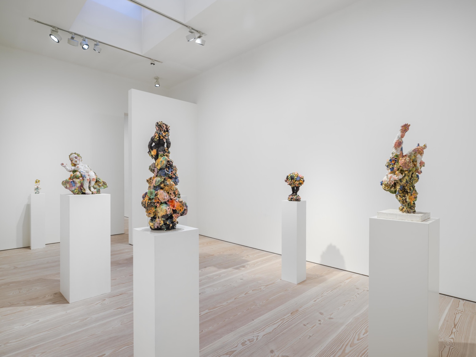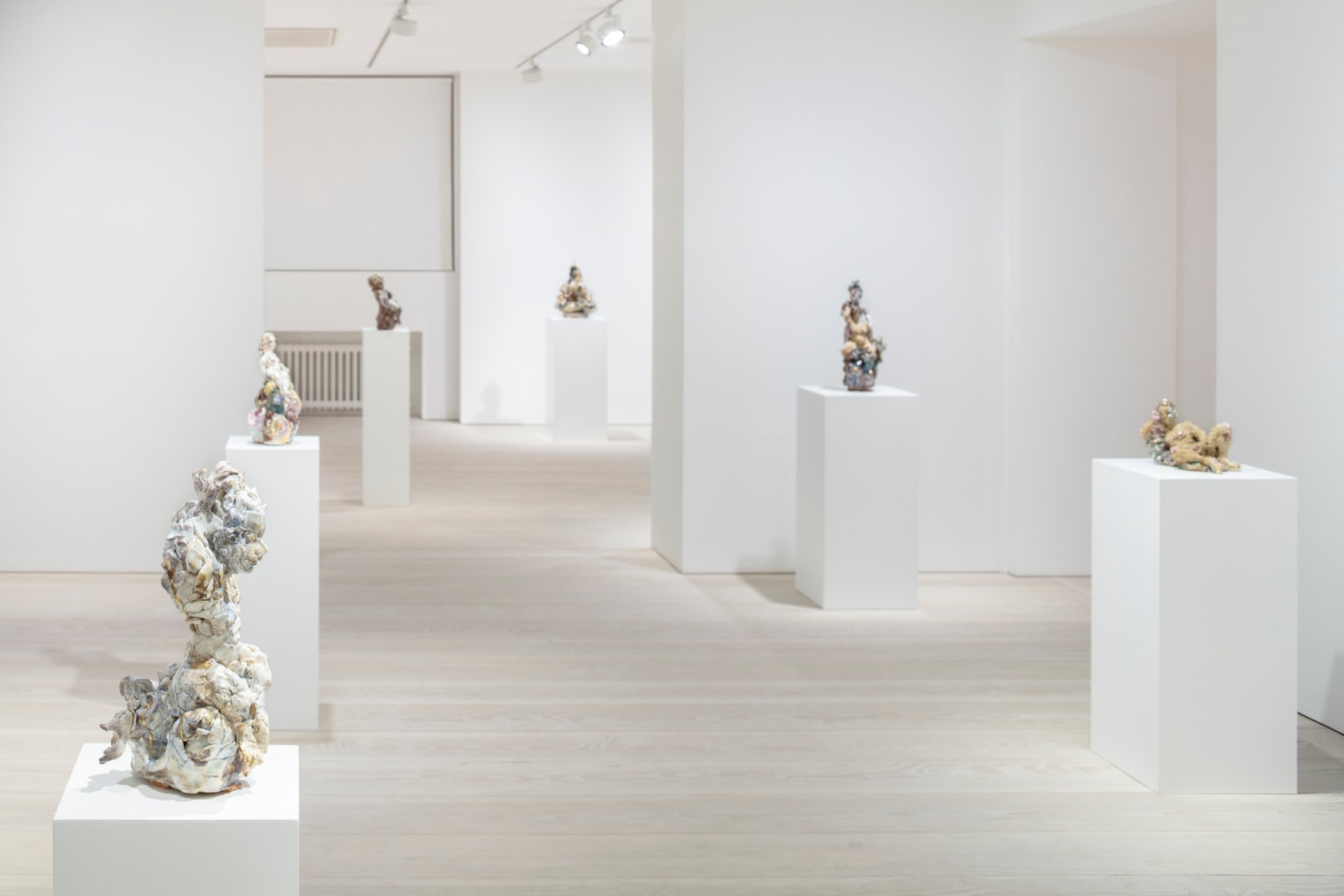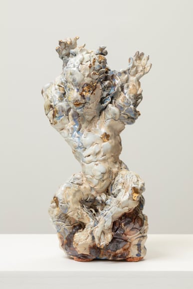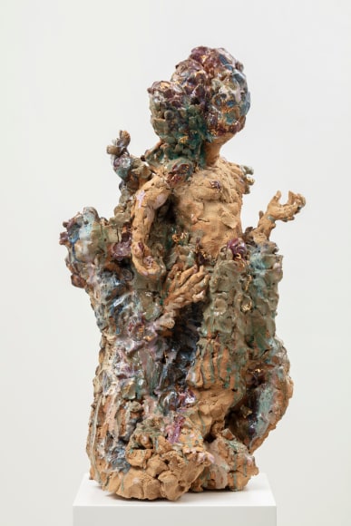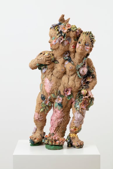Emma Helle is a Finnish sculptor who casts the spotlight on marginalized creatures, usually relegated to secondary status in art history. Relaxed, unpretentious, and generous in her style of portrayal, she lends soft, curvaceous shapes to the bodies with a breadth and richness of expression that evokes canonical works from art history. Throughout the ages, there have always been specific conventions that have dictated the portrayal of the human body, a legacy that Helle addresses through a dual lens of art history and corporeality. Lush, thriving vegetation entwines itself around human figures in Helle’s sculptures. The plants cling to the space and the figures, supporting them and themselves being supported.