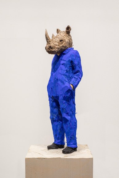 German artist Stephan Balkenhol is one of the preeminent sculptors of our time. His practice grew out of the dominant trends of Minimalism and Conceptualism in the 1970s, where he stood alone in his desire to reintroduce the figure to contemporary sculpture. Carved from a single wood block and often incorporating a pediment, each work demonstrates the artist’s raw and spontaneous treatment of the material. Chisel marks, fissures and splinters show the medium as both living and inanimate. Moreover, the characters are painted in the simplest but most effective colors and color combinations.