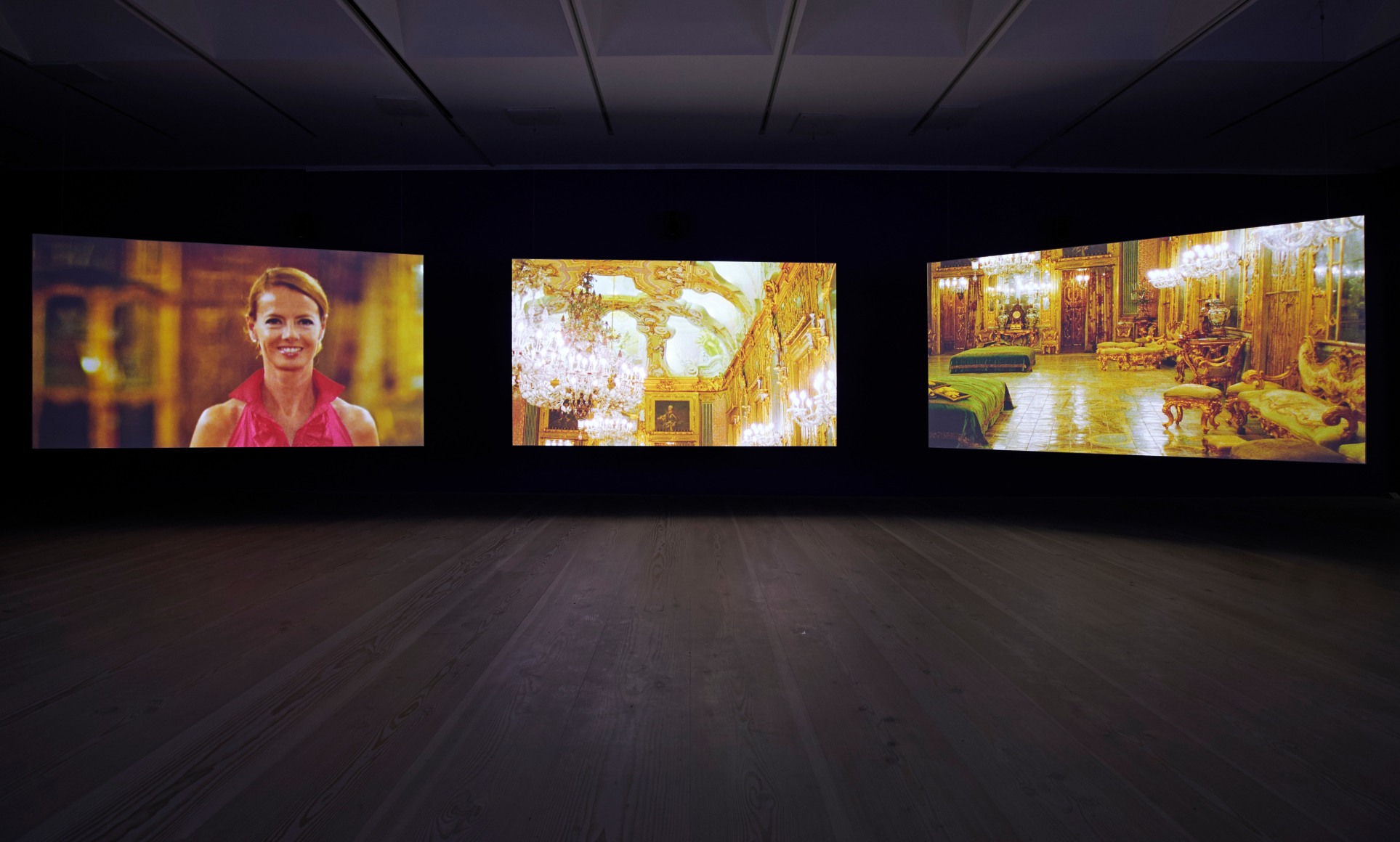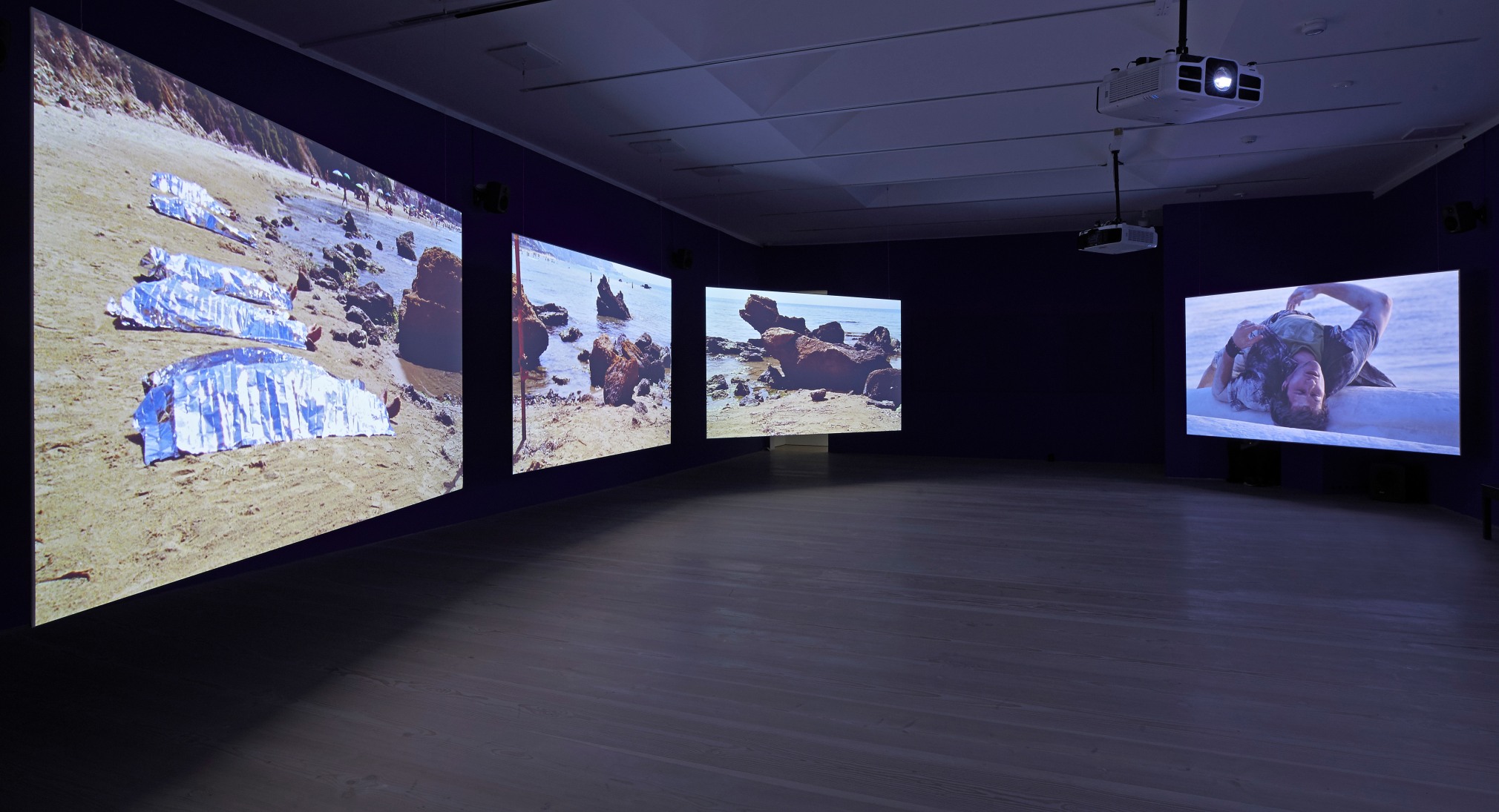 Shot in 2007 in the islands of Sicily and Lampedusa, Italy, Julien’s film installation depicts the picturesque fishermen village of Agrigento where thousands of refugees arrive each year to seek asylum. These images are counter posed with the grandeur of Palazzo Gangi, a famed location from Italian filmmaker Luchino Visconti’s Il Gattopardo (The Leopard). In a poignant juxtaposition to the deadly voyage, performance sequences have been choreographed by Russell Maliphant, while echoing and rearticulating these dramatic voyages. Through the use of multiple screens and the interweaving of images, Western Union: small boats subverts strict narrative, creating a collage of sound and image, which blurs the boundaries of documentary and fiction.