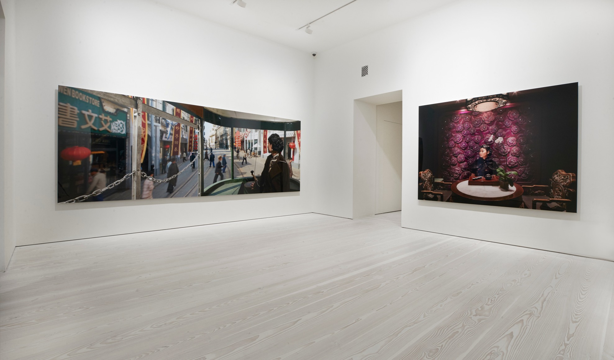 A selection of two photographic works from Ten Thousand Waves (2010) series are also presented, illustrating Julien’s continuous interest and artistic engagement with the themes of human aspiration for a better life, movement of people across continents and globalization. Ten Thousand Waves seeks to reflect on the story of Chinese cockleshell pickers who drowned in England’s coast through the perspective of Mazu, the goddess of the sea and the fishermen.
